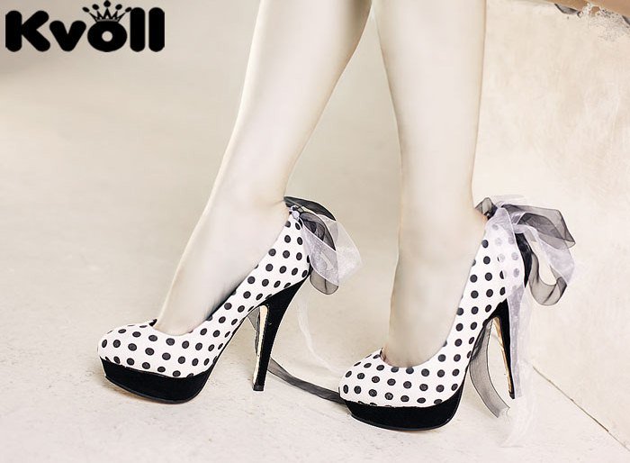 | White And Black School Heel Shoe With Bow |